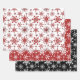 Festive snowflakes and sparkles patterned wrapping paper set, perfect for your Christmas gifts for family and friends. The design consists of different snowflake designs, sparkles and splatters in a pattern one white and red, another red and white and the other black and white. This snowflake pattern instantly creates the wonderful Christmas feeling of joy and festivities.