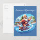 Festive Christmas surfing Santa add text Holiday Postcard