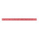 Christmas ribbon with red pattern of reindeers and poinsettias.