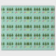 This vibrant design features three decorated Christmas trees, each adorned with unique ornaments. The first tree is decorated with white and red hearts, the second with red and yellow starbursts, and the third with yellow dots. Below the trees are three colourful shooting stars in red, yellow, and green, adding a whimsical touch to the festive scene.
