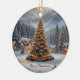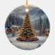 Festive Christmas tree in a mountain village Ceramic Ornament