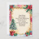 A decorated Christmas tree in the snow, with brightly wrapped presents, creates a bright and festive Christmas party invitation. Remove the text, and this would be perfect for a holiday newsletter.
