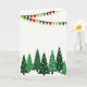 This lovely illustration shows a scene filled with holiday cheer, set against a plain white background. The picture is split into two parts: at the top, colorful pennant flags in red, yellow, and green create a festive mood. In the bottom half, there's a line of stylized Christmas trees in shades of green, each decorated with different colored ornaments. The decorations include golden, red, pink, and white ornaments, adding charm to the scene. The clean white space around the flags and trees makes the colors stand out and gives a crisp, modern feel to the card. It's a perfect way to share holiday cheer with friends and family. Enjoy spreading the festive spirit 🎅🏼🎄🎁.