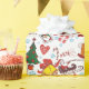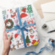 This Festive Christmas Wrapping Paper features a delightful hand-drawn pattern of Santa Claus, snowmen, Christmas trees, gifts, bells, and candy canes — all in bright, cheerful colors that capture the magic of Christmas.