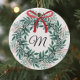 Festive Christmas Wreath Custom Initial and Photo Ceramic Ornament