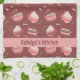 A pretty Holiday kitchen towel with a hot cocoa mug pattern . Personalize it with a name or your own text .