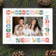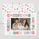 Merry Christmas and Happy New Year! The fun bold font in a bright festive colour palette creates a cheerful frame for your family photo. The back is a playful confetti pattern in the same unique mix of pink, red, blue and green.