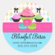 © 2020 Socialite Designs Inc. Whimsical and colourful cake pops, cupcake and macarons with polka-dot ribbon sticker design for sealing your bakery packages.