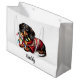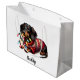 Celebrate the joy of the holiday season with our "Festive Dachshund Delight" Gift Bag! This vibrant depiction showcases an animated black dachshund playfully wrapped in colourful Christmas lights and donning a cozy holiday sweater. A perfect blend of charm and festive spirit, it's sure to be a delightful addition to any Christmas tree.
