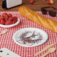 If you love deers and Christmas, you will love this design on paper plates. It features a cute deer in a wreath of Christmas decorations. The wreath is made up of pine branches, flowers and ornaments. This design is perfect for animal lovers and is great for the holiday season.
