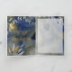 A luxury watercolor painted holiday card featuring a deep navy blue and gold background with gold and blue leaves and a special chickadee bird perched on a golden branch by a shimmering gold light. The graphics continue on the inside and back of the card, making this a card your recipients will hold onto for years to come.