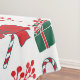 Dining table with overall palette of red, green, and white is deeply rooted in Christmas symbolism, with red representing the blood of Christ in Christian tradition, green symbolizing life and rebirth, and white standing for purity and peace.