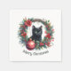 If you love cats and Christmas, you will love this design on paper napkins. It features a cute black kitten sitting in a wreath of Christmas decorations. The wreath is made up of pine branches, and red flowers. This design is perfect for cat lovers and is great for the holiday season.