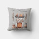 Festive fireplace Quote Merry Christmas Throw Pillow. A welcoming festive fireplace illustration in earthy tones, Merry Christmas in an simple script. On the back a wonderful festive quote From gingerbread houses to starry nights, may your Christmas be filled with Magical Lights which you can change if you wish on a background of subtle grey.