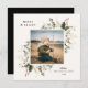Festive Holiday Botanical Foliage Frame, flat photo card. Features, black colour typography and matching solid colour backing.