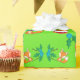 A playful pattern featuring cheerful foxes adorned with winter accessories and surrounded by holly leaves. The vibrant green background adds a lively and festive touch, perfect for holiday decorations.
