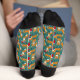 These foxes are all ready for Christmas and you will be too with these adorable socks. These crew socks feature illustrations of adorably festive foxes wearing Santa hats and Christmas wreaths and carrying ornaments and Christmas stockings. The illustrations are set against a dark teal background and accented with holly leaves and berries, tree ornaments and white snowflakes dots.