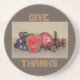 Sandstone coaster with photograph of fruits and inspirational words. You could use these at Thanksgiving!