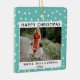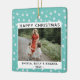 Festive Fun Turquoise Star Pattern Photo Ceramic Ornament