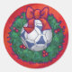 Festive Futbal in Wreath on Red Classic Round Sticker
