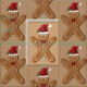 Destei's festive illustration of a brown colour gingerbread cookie with a Santa hat and a red bow as a pattern. The background colour is light brown.