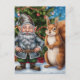A festive gnome in a santa hat and a squirrel in front of a Christmas tree AI generated art