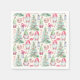 Beautiful paper napkins with a seamless watercolor Christmas gnome pattern full of greenery, gifts, candy canes, and bows. Ideal for Christmas dinners, parties, buffets, and winter celebrations.