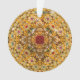 Festive sparkling gold beaded ornament, perfect for celebrating this Christmas holiday season in sturdy, non breakable acrylic, ideal for families decorating trees or maybe mischievous cats