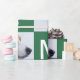 Festive white dog bone treats on a green background Christmas holiday wrapping paper with photo collage and your furry friend's monogram.