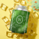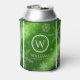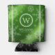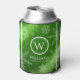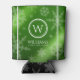 Festive Green Foil Snowflakes Monogram Name Can Cooler