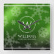 Festive Green Foil Snowflakes Monogram Name Square Wall Clock
