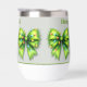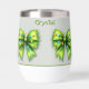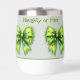 Festive Festive Verte Fours Bow-Lights Naughty ou Nice Vin Thermal Tumbler. Ce tumbler à thème de vacances présente un arc vert flou enveloppé de mini lumières, ajoutant une touche fantaisiste. La phrase "Naughty or Nice" est présentée sur le devant, parfaite pour une ambiance saisonnière ludique. Le dos peut être customisé avec votre nom, ce qui en fait un accessoire festif unique ou un cadeau de Noël!