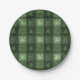 Festive Green Textured Plaid And Trees Christmas Paper Plate