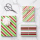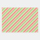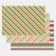 These fun, festive Christmas inspired wrapping paper sheets designs feature red, white, and green coloured striped patterns. It might be fun to use wrapping paper sheets like these when wrapping gifts being given in celebration of Christmas.