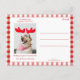 Fun unique Happy Holidays greeting in red custom fancy typography on rectangular shape with red border and customizable text fields and photo template. Back features complementary red and white checked background, text fields, address lines and photo template. All graphic elements are editable.