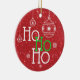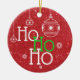 Festive Ho Ho Ho on red glitter background Ceramic Ornament