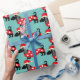 Black Dachshund dogs in red and white polka dot sweaters with Santa style hats on a retro aqua background - the perfect holiday pattern for dog lovers.