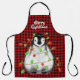 Festive Holiday Penguin, twinkle lights, red plaid Apron