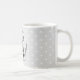 Celebrate the magical and festive holiday season with our custom holiday mugs. Our festive holiday design features our beautiful hand drawn festive holiday racoon etching illustration with laurel wreath and family monogram crest design. Modern white and grey design with a modern polka dot pattern and personalized with family monogram. All illustrations contained in this festive holiday racoon family monogram holiday mug are hand-drawn original artwork by Moodthology. You can customize the text size, text colour, font and layout for your own personal design preference.