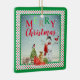 This colourful, nostalgic ornament has a festive watercolor winter scene, complete with a jolly snowman, gifts, a little Christmas tree planted in a rustic wooden barrel and the cutest little puppy dog. Fluffy white snowflakes are falling all around and there is a red cardinal sitting on the snowman's hand and a little black and red bird sitting on top of the tree. Fun typography says MERRY in caps in different colours and Christmas in a modern red script. It's bordered with red and green polka dots on a white background with green edges. The reverse side has a stack of Christmas gifts on the bottom and the rest is completely customizable with a New Year sentiment, your last name, family first names and year. This would make a lovely gift for a co-worker, neighbour, babysitter or anyone else you want to give a special thoughtful gift to this Christmas.