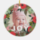 Festive Holiday Wreath with Joy Typography Photo Ceramic Ornament