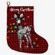 Festive Holiday Zebra, twinkle light buffalo plaid Large Christmas Stocking