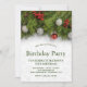 Festive Holly Berry and Pine Christmas Birthday Invitation