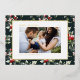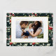 Merry Christmas! Send your warm greetings to family and friends with this customizable Christmas photo card. It features a watercolour holly pattern on a dark green background. Personalize this gold foil Christmas card by adding your details. This botanical Christmas card is available in other colours and cardstock.