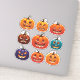 Add a festive touch to your Halloween crafts with the Festive Jack-o’-Lantern Faces Scrapbook Sticker Sheet. Featuring nine glowing jack-o’-lantern designs, each pumpkin brings a unique, playful expression to your projects. The vibrant colours, including classic orange, deep purple, and a fun teal, offer a fresh take on traditional Halloween decor. With a variety of expressions ranging from mischievous grins to spooky and surprised faces, these stickers are perfect for enhancing scrapbooks, planners, cards, or any Halloween-themed DIY project. Available in six sizes and a choice of matte white, glossy white, or glossy transparent vinyl, these stickers are sure to brighten up any craft.