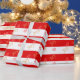 Festive Joy Heart Pattern on Striped Red and White Wrapping Paper