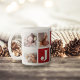 Customize this classic white mug with seven of your favorite Instagram or square photos in a gridded collage layout. Add treasured photos of family, children or grandchildren to create a sweet keepsake and a one of a kind Christmas gift. "JOY" is interspersed with your photos in retro white typography on festive red, with a white snowflake illustration standing in for the "O."