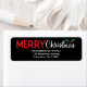 Ajoutez les étiquettes d'adresse de retour Festive Joyeux Noël à votre courrier de vacances cette année pour une touche personnalisée amusante. L'étiquette d'adresse de retour inclut l'expression Joyeux Noël dans un mélange de police en gras et écriture manuscrite avec un spring sainte sur un arrière - plan noir. Customisez avec votre adresse de retour pour une touche de finition parfaite.