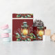 A soft watercolor lantern glows gently from within, nestled in holly and snow-kissed twigs. With a background of deep burgundy, this simply beautiful peaceful winter design evokes the warmth of candlelight and the quiet charm of holiday evenings. Perfect for those who love vintage Christmas aesthetics, cozy cottage vibes, and nature-inspired art when wrapping their Christmas and winter holiday gifts.