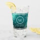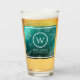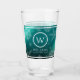 Add a festive touch to year-end and Christmas celebrations with this elegant pint glass, which features snowflakes falling on a faux metallic light blue foil / ombre / moire background. Add initial / monogram (or logo), name, year, or custom text as desired. Reverse shows identical design.